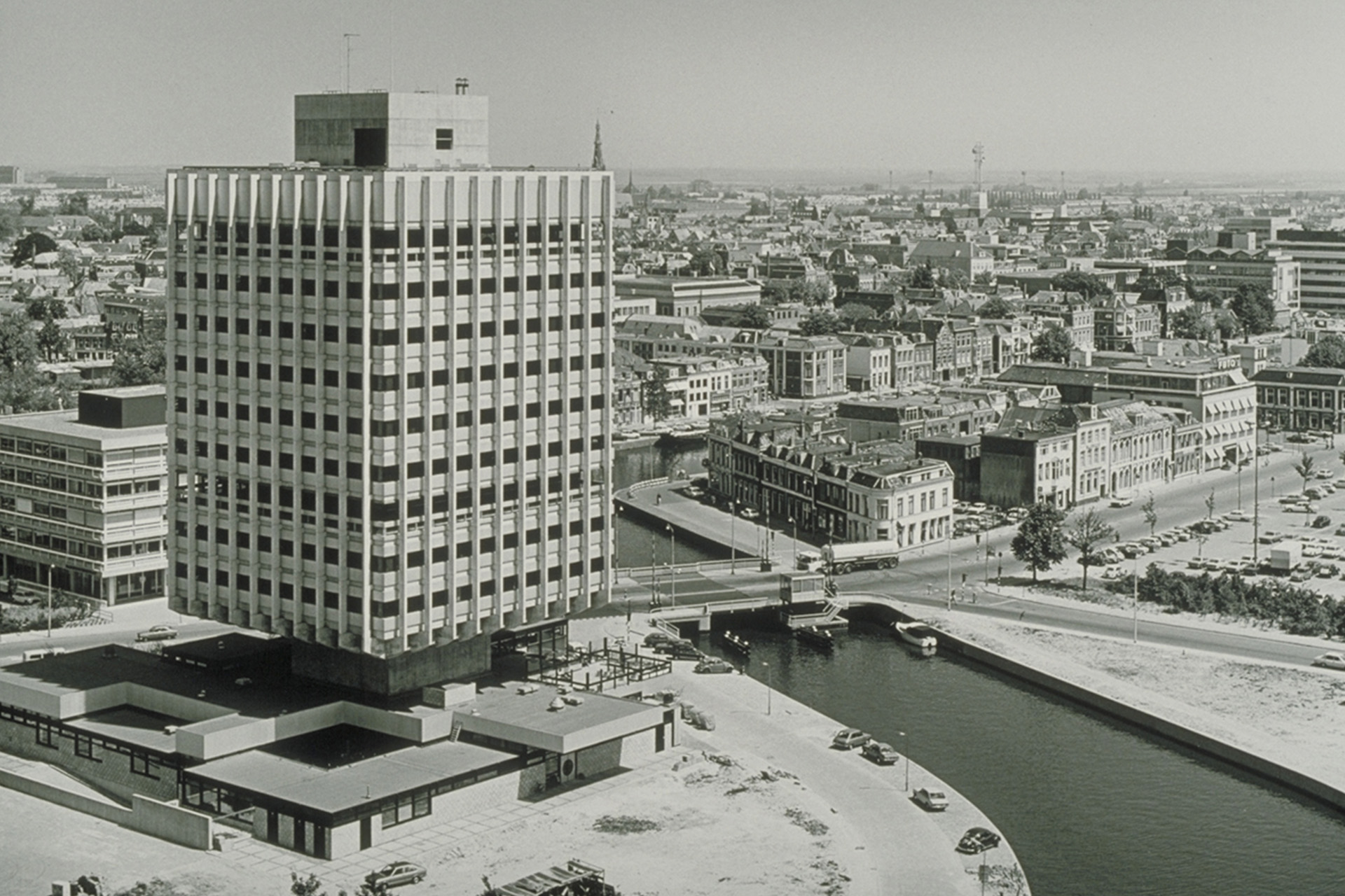 In 1973 werd het Girokantoor gerealiseerd naar een ontwerp van Abe Bonnema. Het gebouw stond vrijstaand aan de Wester Stadsgracht, net buiten de historische binnenstad van Leeuwarden. Het gebouw is opgetild van het maaiveld en staat op een betonnen poot. Deze paddenstoelconstructie geeft het gebouw zijn unieke karakter en maakte daarnaast een vrij indeelbare plint mogelijk. Als snel werd het plangebied uitgebreid met twee nieuwe gebouwen: Nijderbij (1982) en de Zwei (1990). De drie kantoorgebouwen werden functioneel aan elkaar gemaakt om een soort van campus te creëren.