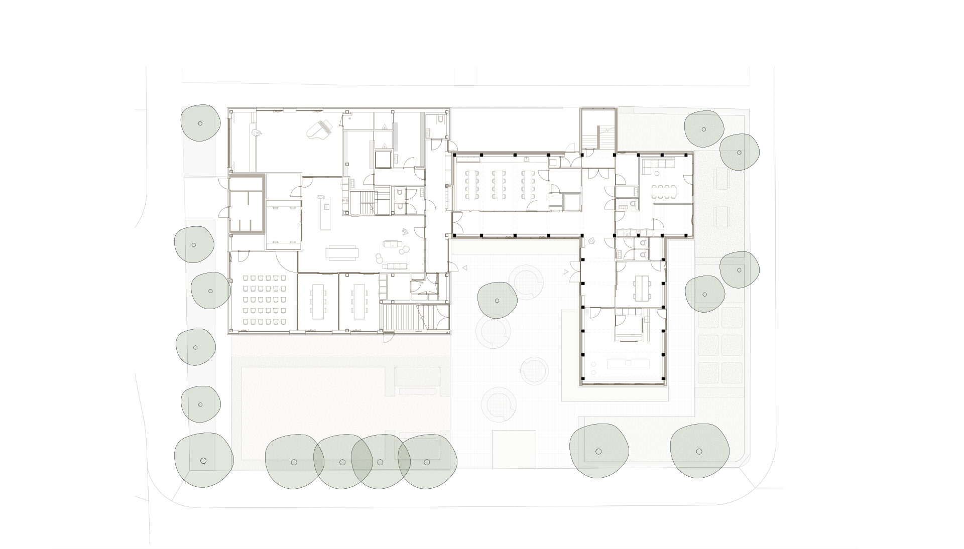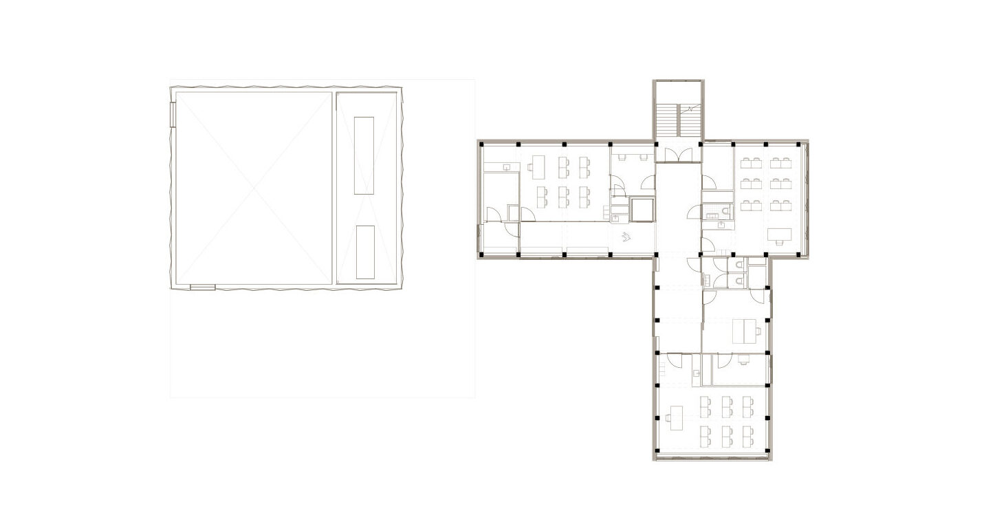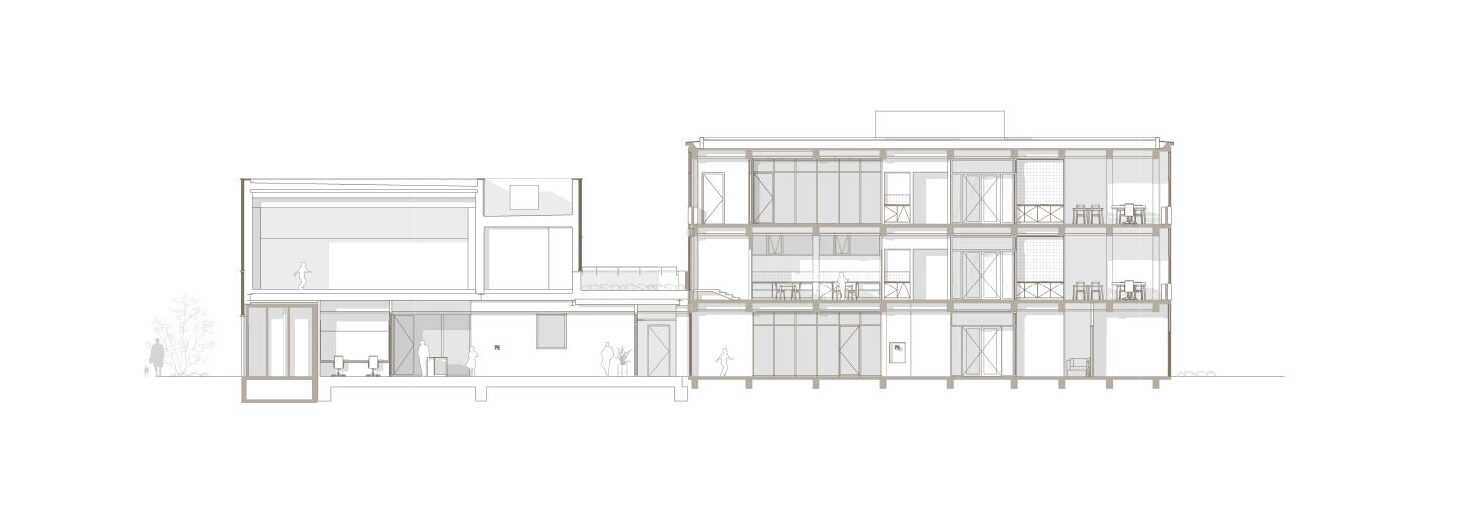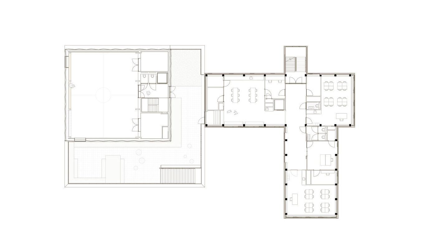 Voor het bestaande gebouw hebben we een nieuwe indelinggemaakt die goed past binnen debestaande structuur. Metselwerk binnenwanden blijven gehandhaafd en nieuwe openingen wordenheel precies geplaatst. Schachten zijn zodanig ingepast dat deze passen binnen de randvoorwaardenvan de constructie, nieuwe installaties worden slim versleept zodat alle plafonds tussen de betonnenspanten gerealiseerd kunnen worden. Wij vinden het van wezenlijk belang dat juist de betonnenconstructie voelbaar blijft in het interieur