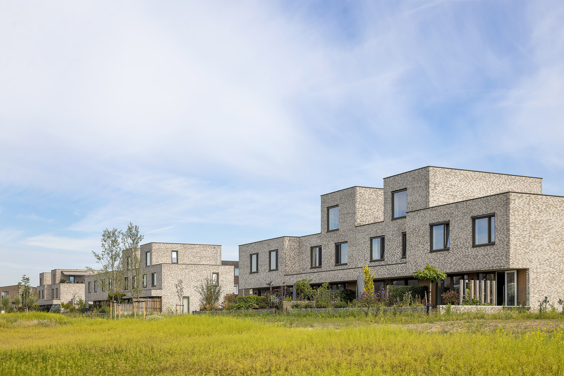 Er worden twee typen gerealiseerd; twee laags (A) en drie laags (B). Door dit hoogteverschil in combinatie met de verschuiving van de verdieping ontstaat een dynamisch beeld. De vijf bouwblokken hebben elk een eigen configuratie waardoor ieder bouwblok uniek is. De woningen worden optioneel als energie neutraal aangeboden.