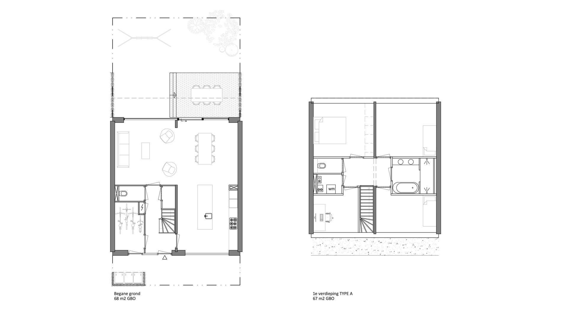 De breedte van de woning zorgt voor maximale flexibiliteit voor de bewoners. Wil je de keuken aan de parkzijde of juist aan de voorkant? Wil je het terras als uitloop van de woonkamer of juist als verlengstuk van de keuken? Het kan allemaal!