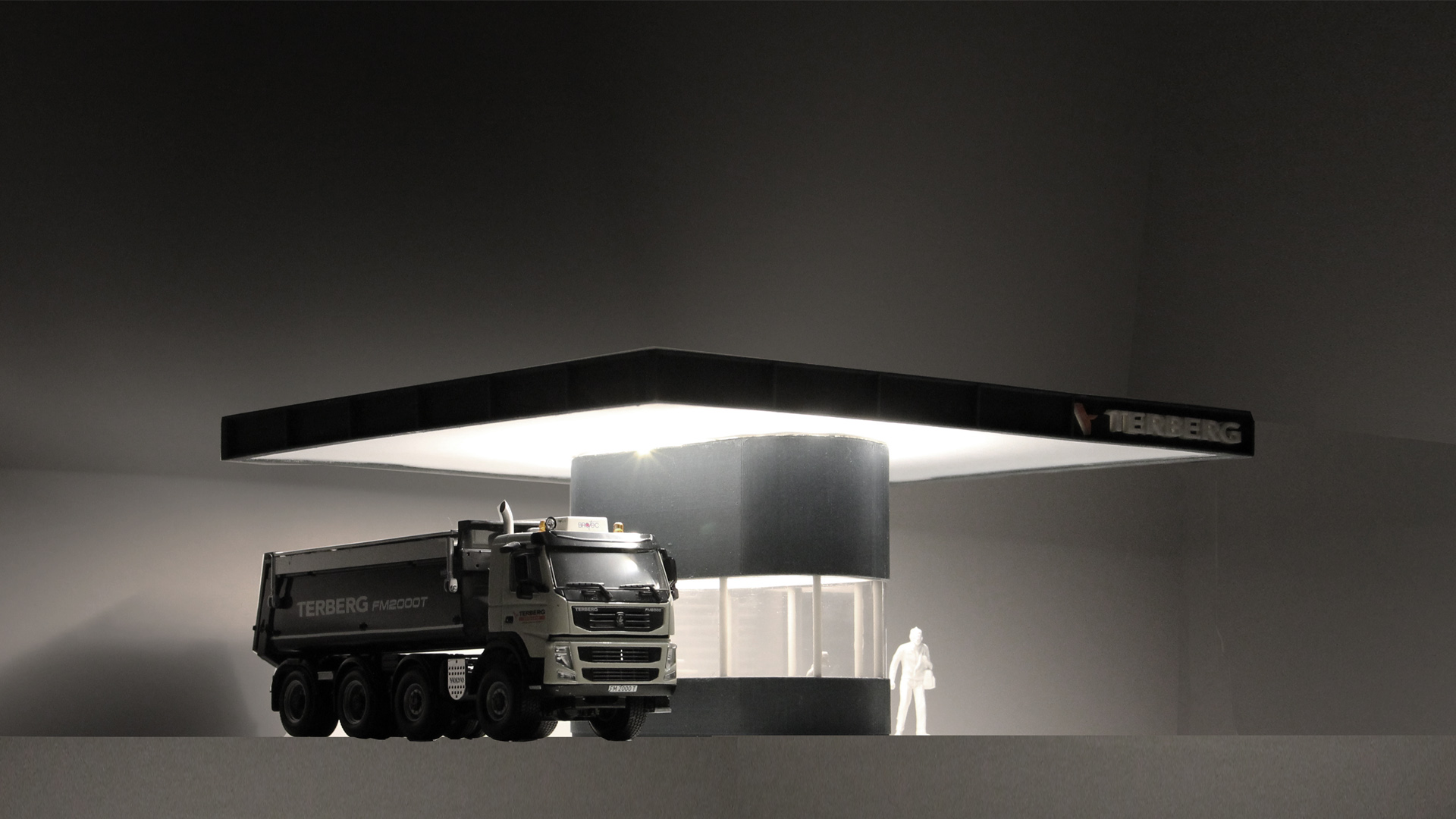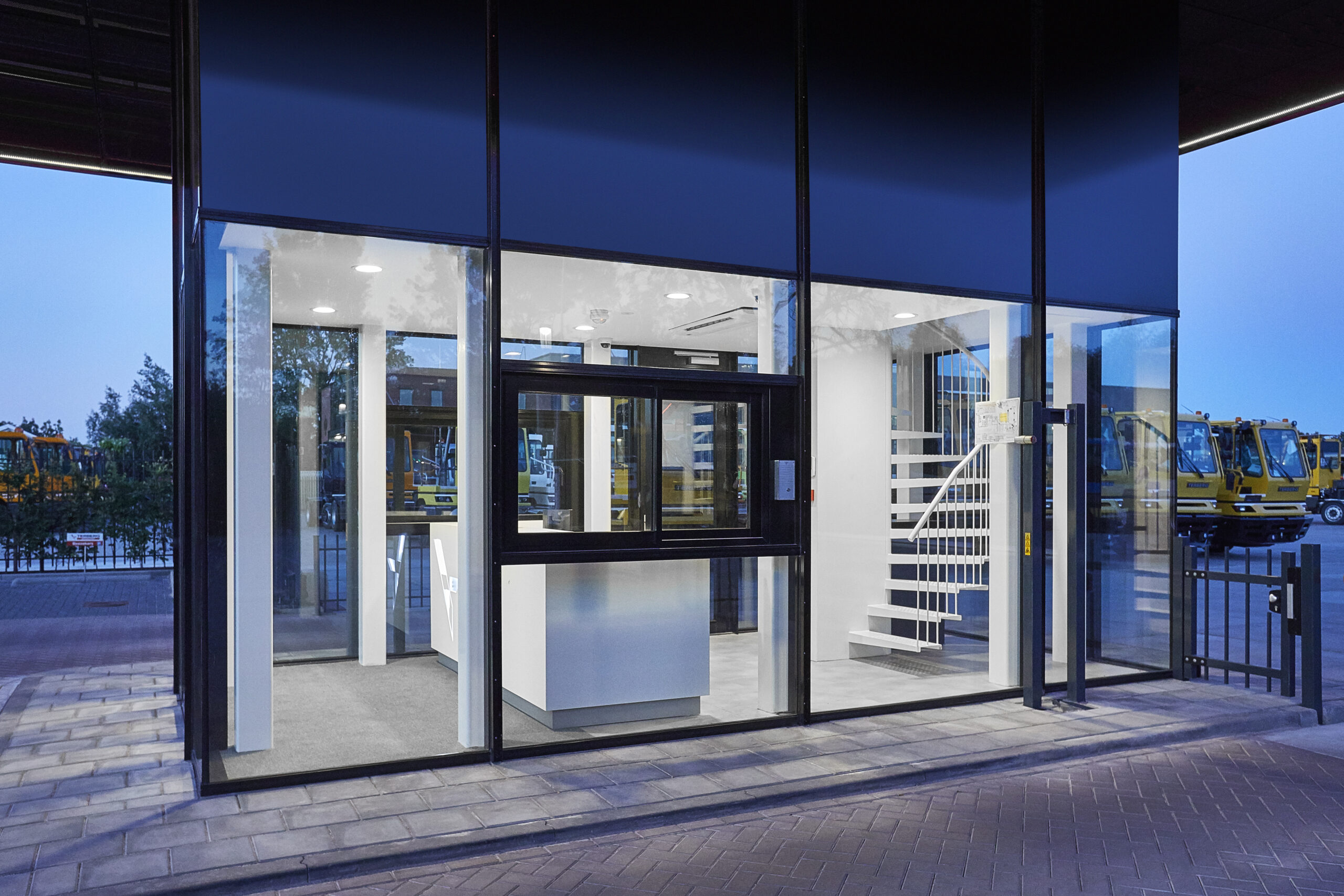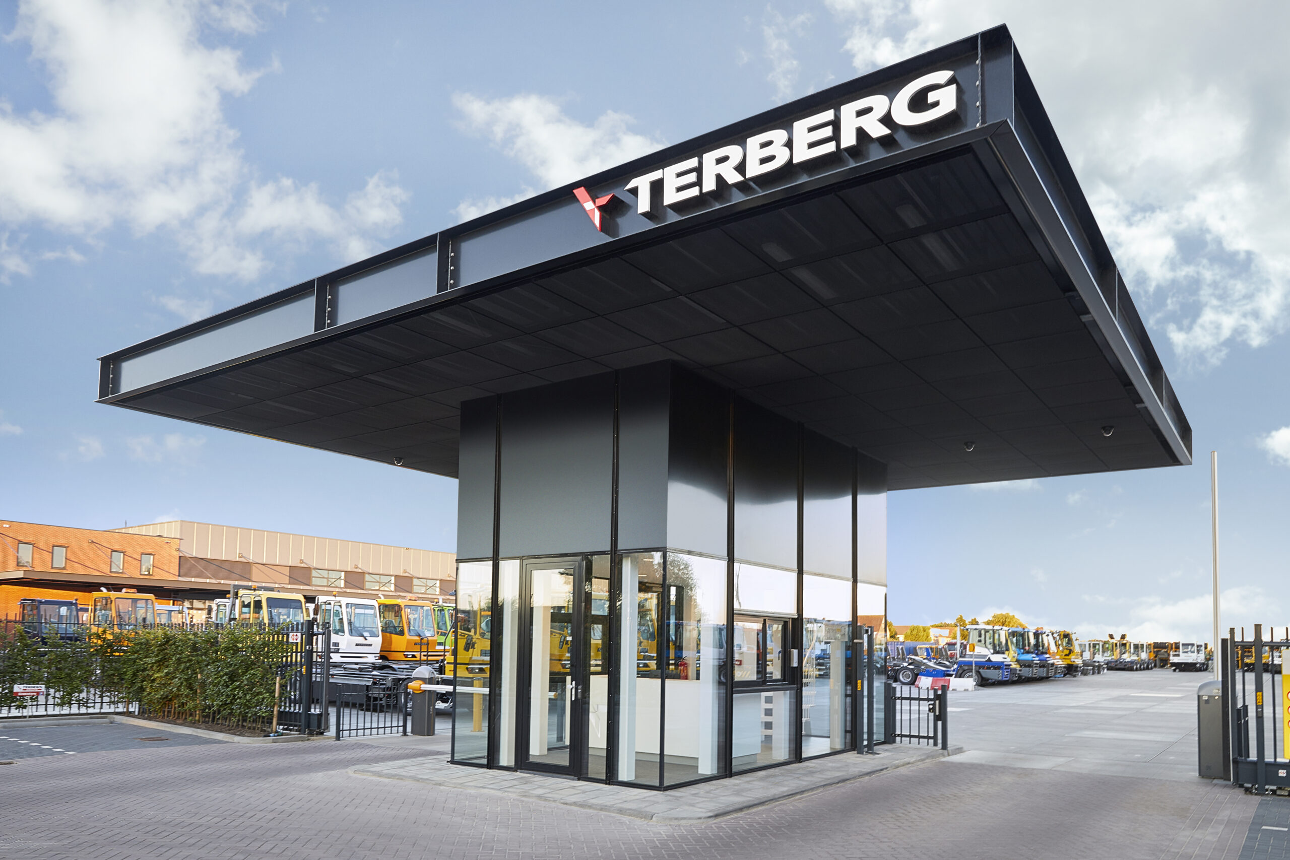 Met de grote uitbreiding van het fabrieksterrein van Terberg in Benschop werd ook de hoofdentree verlegd van de zijkant van het terrein naar de voorkant. Om de zichtbaarheid van deze entree, die iets terug ligt van de weg, te vergroten ontwierpen we een grote luifel die tevens functioneel dient om de bezoekers droog te houden bij het aanmelden. Deze luifel wordt vanuit het midden vrij gedragen en daar bevindt zich tevens de portiersloge. Deze is op de begane grond zo transparant mogelijk gehouden met een minimale detaillering om het zicht rondom te maximaliseren. Er is een verdieping met ondersteunende functies die contrasteert door juist gesloten te zijn. Er is gezocht naar een optimale verhouding tussen de maten van luifel, constructie, plattegrond en gevel. De maquette hebben we 3D laten printen.