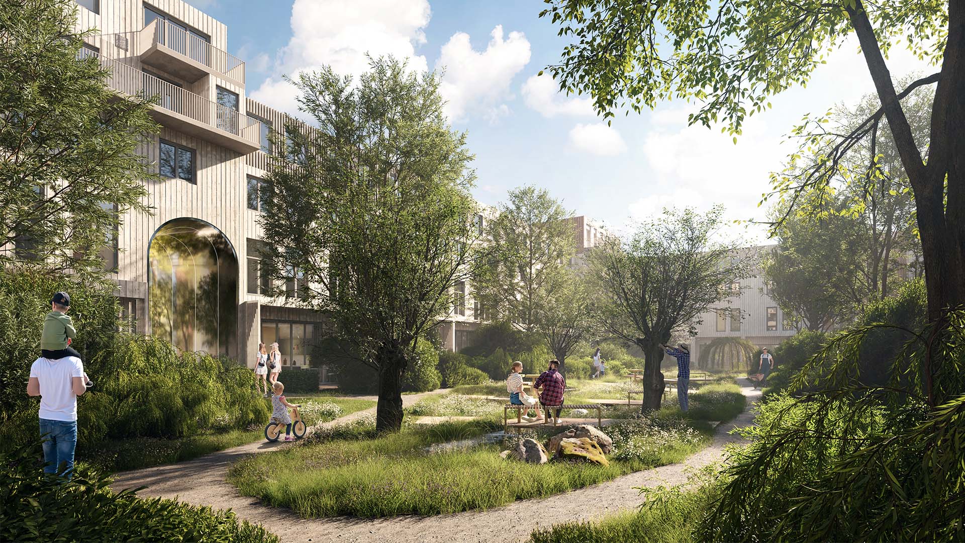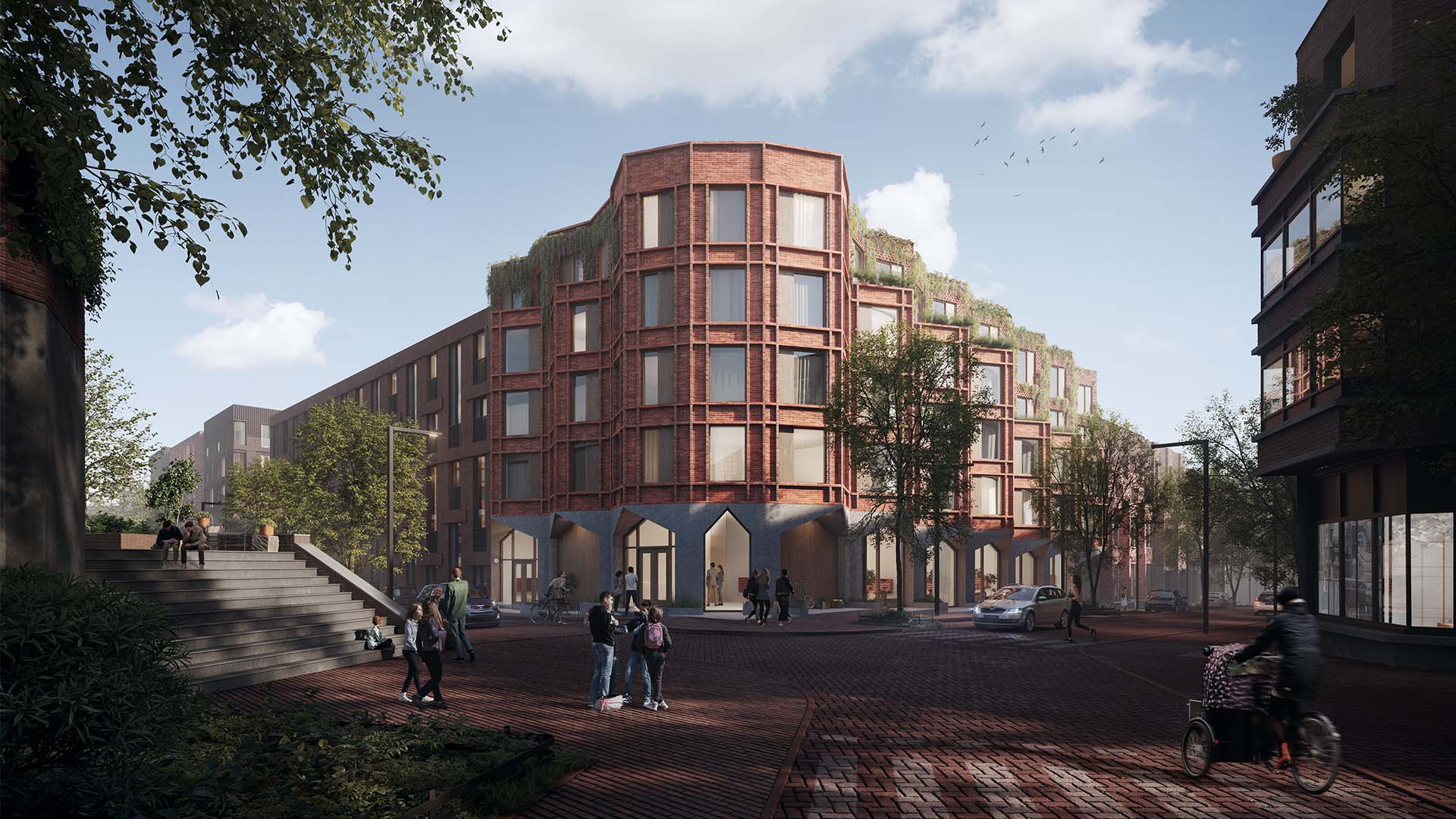 De zorgvuldig ontworpen binnentuin is niet alleen een prettige verblijfsplek maar zorgt ook voor voldoende waterbuffering. De daken zijn grotendeels voorzien van kruidenmengsels en ieder bouwblok heeft eigen nestkasten voor vogels en vleermuizen. De woningen genereren hun eigen energie door de PV panelen. Deze energie wordt opgeslagen in de buurtbatterij die tijdens piek-uren de stroom weer terug levert aan de woningen.